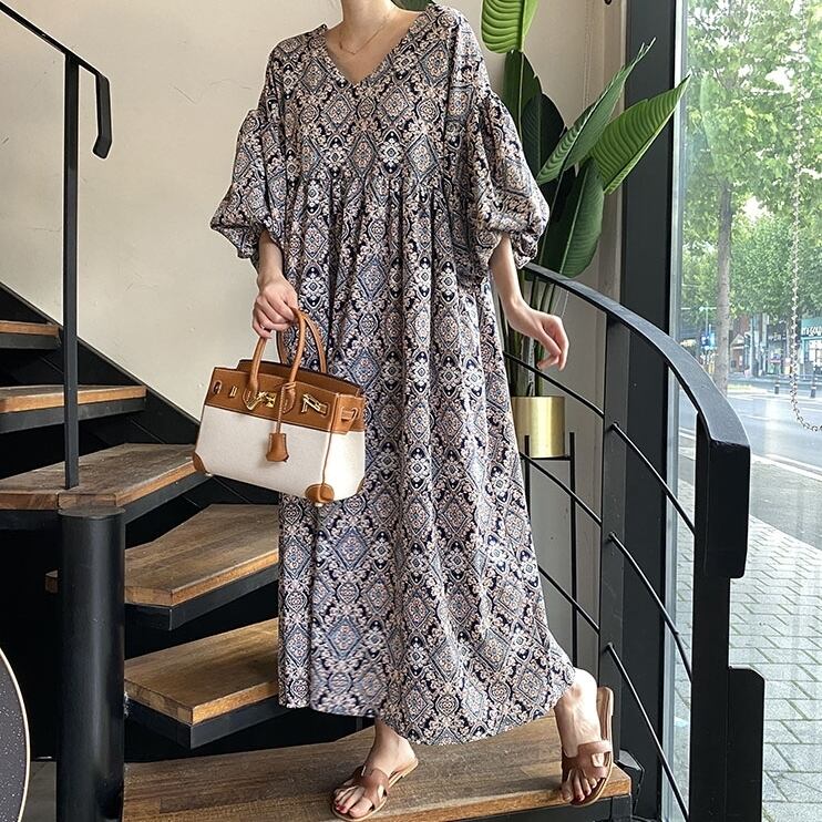 ワンピース レディース 春夏 秋冬 春 夏 秋 冬 エスニック柄ワンピース 大きめ ワンピース リゾート Vネック 半袖 ロングワンピース ゆったり 丈 ロング マキシワンピース ロングワンピース ビッグスリーブ ランタンスリーブ 体型カバー 楽チン ネイビー ブラック リゾートワンピ 海 プール オフィスカジュアル きれいめ OL 10代 20代 30代 40代 C-OSS0038