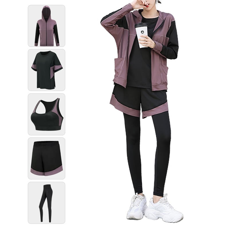 フィットネスウェア 5点セット レディース 春夏 秋冬 春 夏 秋 冬 ジムウェア ダンスウェア 部屋着 パンツ ダンス パーカー アウター ジャージ トップス スポーツブラ レギンス ショートパンツ ヨガウェア フィットネス ヨガレギンス ジム ダンスパンツ ヨガパンツ スパッツ パープル ピンク ブラック トレーニングウェア スポーツウェア ランニングウェア レギンス カジュアル OL 上品 大人 20代 30代 40代 50代 C-F0005