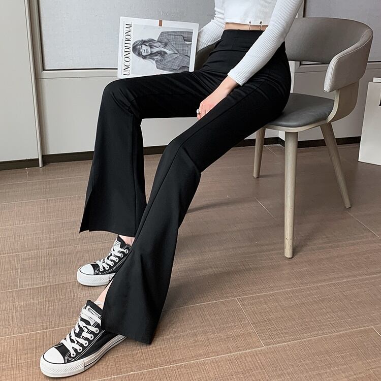 フレアパンツ レディース 春夏 秋冬 春 夏 秋 冬 黒 ボトムス パンツ ベルボトム ハイウエスト ラッパパンツ シンプル 千鳥柄 スリット タイト 美脚 脚長効果 きれいめ 大人 ブラック 千鳥 韓国ファッション 通勤 OL カジュアル オフィスカジュアル ウエストゴム オフィス OL S M L XL 2XL ズボン スーツ C-PSS1035