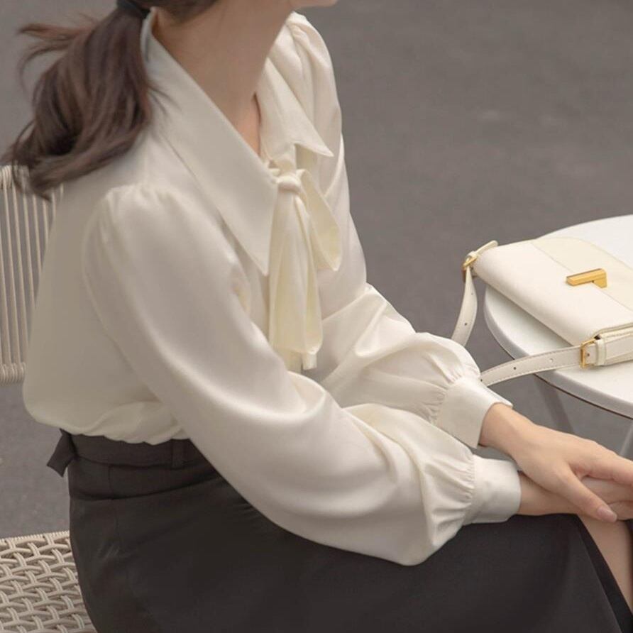 ブラウス レディース 春夏 秋冬 春 夏 秋 冬 白 シャツ トップス ボウタイ 長袖 トップス チュニック 無地 ボウタイシャツ チュニックブラウス ホワイトリボン ボウタイブラウス 韓国 ゆったり ブラウスシャツ シンプル 長袖シャツ ブラウスシャツ こなれ シャツブラウス オフィス カジュアル OL 上品 大人 S M L XL 30代 40代 C-TSS0058