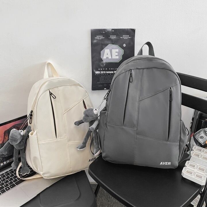 バックパック レディース メンズ リュック 春夏 秋冬 春 夏 秋 冬 黒 バッグ リュックサック ロゴ シンプル かばん ジッパー ファスナー 部活 合宿 旅行 通学 大容量 学校バッグ 大学生 高校生 中学生 ユニセックス 男の子 女の子 A4 B4 アイボリー グレー ブラック カレッジコーデ カジュアル デイリー お出かけ K-B0069