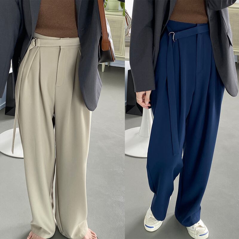 ワイドパンツ レディース 春夏 秋冬 春 夏 秋 冬 紺 ロング パンツ ストレートパンツ ガウチョ パンツ ロングパンツ ボトムス ワイド ガウチョパンツ ハイウエスト ストレッチパンツ ウエストゴム ゆったり ベルト リング 楽チン ベージュグレー ネイビー 10代 20代 30代 40代 C-PSS1024