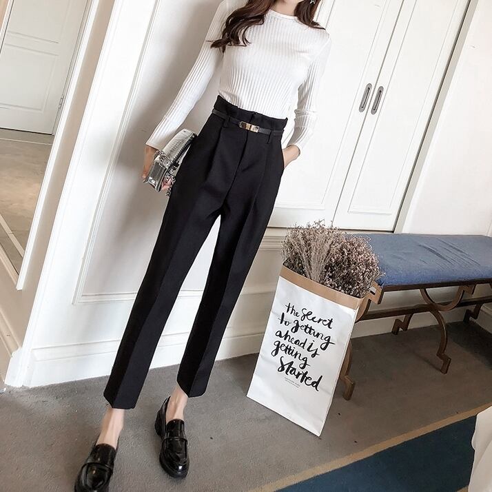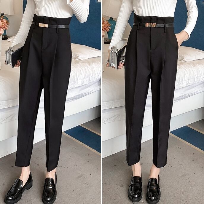 商品名:ハイウエスト クロップド丈 テーパードパンツ