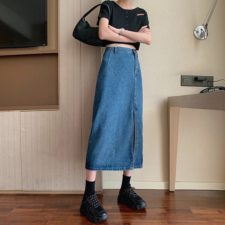 デニムスカート レディース 春夏 秋冬 春 夏 秋 冬 スカート デニム ミディアムスカート ひざ丈スカート スリット入りスカート ミモレスカート ミモレ丈 デニムスカート スリット ミディアム丈 Aライン ハイウエスト OL カジュアル エレガント おしゃれ お出かけ 10代 20代 30代 40代 C-SAW0017