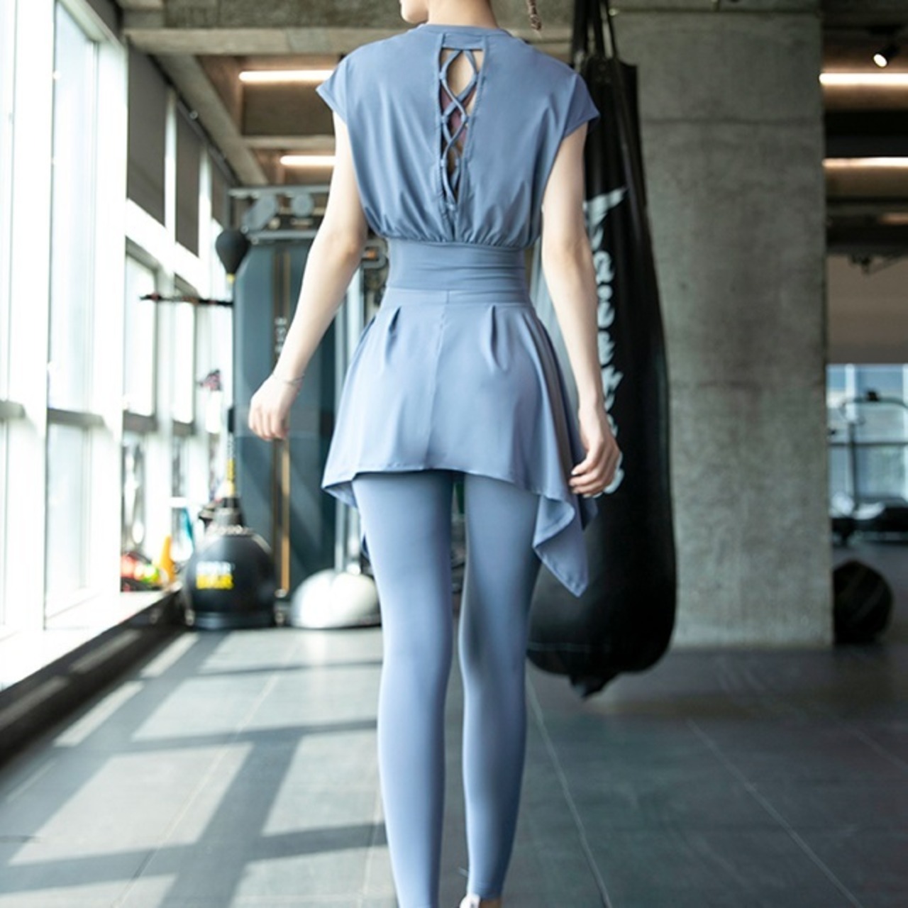 フィットネスウェア 2点セット レディース 春夏 秋冬 春 夏 秋 冬 ジムウェア ダンスウェア セットアップ 半袖 部屋着 パンツ ダンス スカッツ フリル スカート トップス レギンス ヨガウェア フィットネス ヨガレギンス ジム ダンスパンツ ヨガパンツ スパッツ ブルーグレー パープルグレー ライトグリーン ブラック ダイエット トレーニングウェア スポーツウェア ランニングウェア カジュアル OL 上品 大人 20代 30代 40代 50代 C-F0019