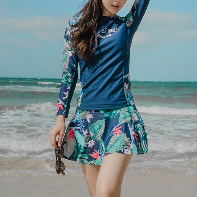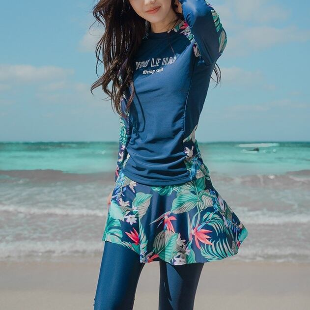 ラッシュガード 3点セット 水着 レディース 春夏 秋冬 春 夏 秋 冬 長袖ラッシュガード インナー付きスカート レギンス スカート ボタニカル柄 長袖 フィットネスウェア セットアップ スイムウェア トップス 大きいサイズ 水着 水泳 プール ビーチ 海 アウトドア リゾート ヨガウェア フィットネス ヨガレギンス ネイビー ダイエット トレーニングウェア スポーツウェア ランニングウェア カジュアル OL 20代 30代 40代 50代 K-M0002