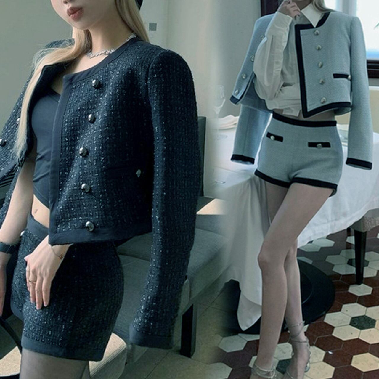 商品名:ツイード ショートジャケット & ショートパンツ セットアップ