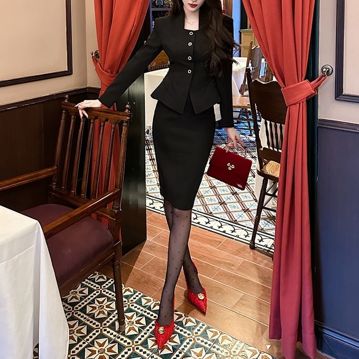 セットアップ レディース 春夏 秋冬 春 夏 秋 冬 黒 ジャケット タイトスカート スーツ 上下セット 2点セット 変形ジャケット 女性用スーツ スーツスカート タイトスカート 長袖ジャケット ミディアム ミモレ丈スカート ひざ丈 学校行事 スカート ボトムス セットアップ オフィス スカート ミディアムスカート ペンシルスカート OL オフィスカジュアル 結婚式 パーティー 卒業式 入学式 卒園式 入園式 お呼ばれ ブラック 10代 20代 30代 40代 C-WAW1076